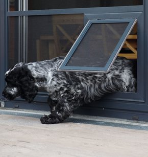 Der Einbau der Hundeklappe für Schiebeanlagen hat ein Innenmaß BxH von 260 x 351 mm.