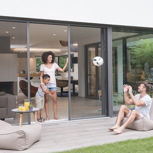 Im Flügelprofil ist eine umlaufende Griffleiste integriert. Dank ihr kann die Schiebeanlage von Klein und Groß mühelos geöffnet oder geschlossen werden.