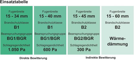 Thanks to the intelligent size chart, just two sizes of the greenteQ OMNIA BG 1 multifunction tape are all it takes to cover all requirements and joint sizes.
