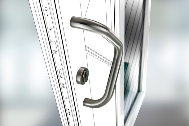 The knob is mounted in a stationary position on the outside rosette. Concealed, end-to-end screw connection including screws for 37–46 mm door thickness.