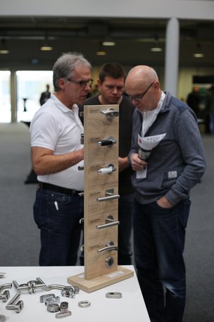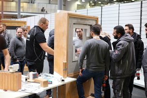 Die Teilnehmer nutzen die Gelegenheit, sich im direkten Gespräch mit den Fachleuten über Neuerungen in der Branche, bei den Produkten oder der Verarbeitung schlau zu machen. „Die Praxis steht bei uns ganz klar im Mittelpunkt“, erläutert Thomas Erhardt, Marketingleiter von VBH und verantwortlich für die Veranstaltungsreihe. „Unsere Besucher können die Produkte und Systemlösungen direkt an konkreten Einbaubeispielen ausprobieren und gemeinsam mit unseren Fachleuten die Vor- und Nachteile erörtern.“ Bei der Produktschau reichte das Angebot in diesem Jahr von Systemen zur Vorwandmontage und für den Holz-Metall-Bereich, über verbesserte digitale Lösungen zur Bestellung und CE-Zertifizierung bis hin zu aktuellen Produkten zur Absturzsicherung, Renovierung und Montage.