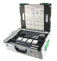 Neben dem schnellen Griff in die übersichtliche L-BOXX bietet der handliche Fenster-Montagekoffer auch die Sicherheit, alle erforderlichen Werkzeuge vor Ort parat zu haben. Auf zwei Ebenen finden sich die Bits und Bohrer ordentlich und übersichtlich sortiert und sicher verstaut, sodass auf einen Blick eventuell fehlende Werkzeuge ersichtlich sind. Ein kurzer Leitfaden im Kofferdeckel gibt darüber hinaus schnelle Hilfe und einen Überblick zu bautechnischen Vorgaben und den erforderlichen Bohr- und Einschraubtiefen in allen Baustoffen.