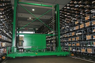 Bild 02: Das Hochregallager am Standort Ilsfeld bietet Platz für 1.300 Kassetten mit Langgütern bis 6 m Länge. Insgesamt sind mehrere tausend Artikel für den Holz-Metall-Bereich bei VBH ständig tagesaktuell verfügbar.