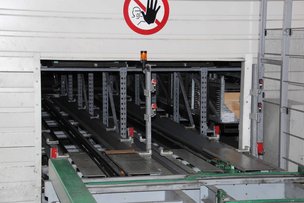 Bild 02: Dreh- und Angelpunkt der voll automatisierten Kasto-Anlage von VBH in Ilsfeld sind die Schleusen für die Ein- und Auslagerung der über 1.400 Kassetten.
