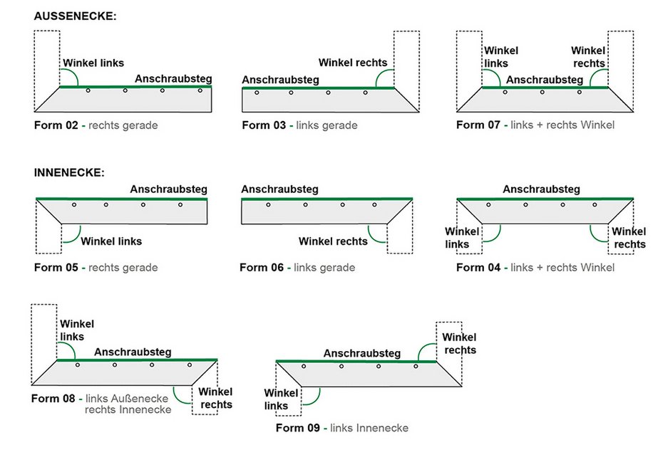 Zuschnitte 90° und Ecken